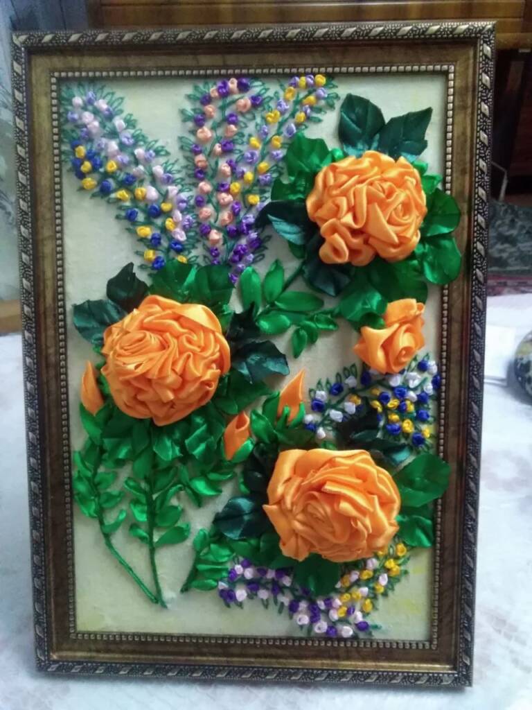 — Если брать во внимание именно технику пэчворк, то это сумка с домиком и цветами, которую заказала моя знакомая. С нее все и началось. Также особо запомнились первые цветы из лент. Невозможно забыть то чувство, когда ты пробуешь что-то новое, вкладываешь душу, а затем видишь, что у тебя действительно получилось. Однажды подруга заказала работу — картину с лесом из берез, в центре которой расположилась цветочная поляна, залитая лучами солнца. И, если прошлые работы были небольшие, формата А4, то данная композиция была размером 60х40.