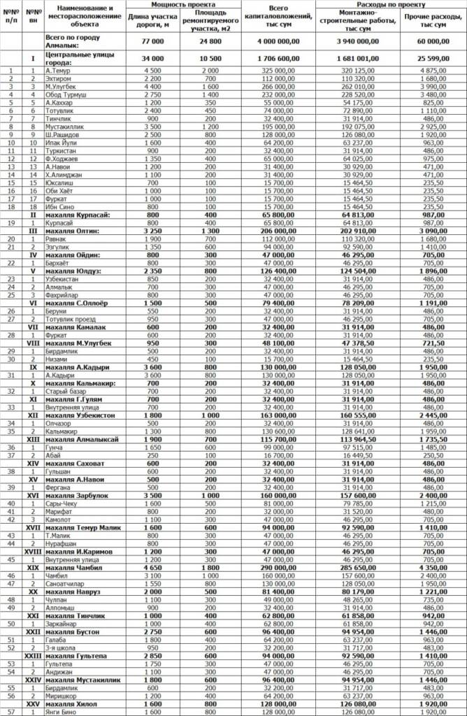 5 апреля текущего года Алмалыкским городским Кенгашем народных депутатов, в соответствии с Постановлением Кабинета Министров Республики Узбекистан от 11 октября 2024 года № 665 «О дальнейшем совершенствовании инфраструктуры улиц и внутренних хозяйственных дорог городов и других населенных пунктов», была рассмотрена целевая программа по содержанию и текущему ремонту автомобильных и внутренних дорог, подведомственных Управлению благоустройства города Алмалыка. Проект программы Кенгашу представил начальник Управления благоустройства Ж. Бакиров.